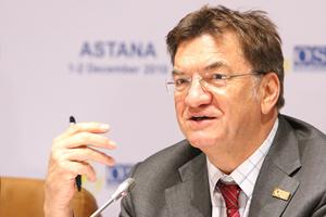 Goran Svilanovic, Co-ordinator of OSCE Economic and Environmental Activities, speaks to a news conference before the OSCE Summit, Astana, 27 November 2010.