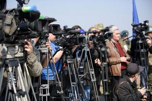 Journalists cover exercises of the Joint Peacekeeping Forces in the Security Zone at Dubăsari Bridge, 28 October 2010.