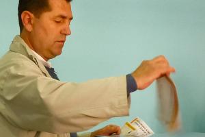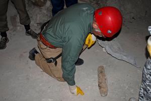 An EUCOM explosives expert with a Soviet shell, Inkerman, Sevastopol, Crimea, September 2009.