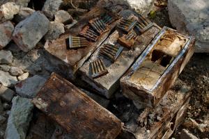 Excavated Soviet World War II rifle ammunition, Kerch Fortress, Crimea, September 2009.