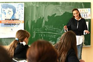Gorica Colic, Counsellor from the Serbian Ombudsman, gives a lecture to schoolchildren in order to promote the institution's role in protecting the rights of children and youth, Trstenik, 22 September 2010.