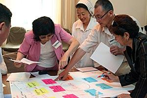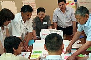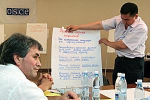 Participants at a workshop on inter-ethnic conflict prevention discuss possible ways to address recent conflict, Bishkek, 31 May 2010.