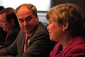 Montenegro's Interior Minister, Ivan Brajovic (l) and the Head of the OSCE Mission to Montenegro, Ambassador Paraschiva Badescu, at the opening of a conference on good governance, transparency and ethics, Budva, Montenegro, 3-4 June 2010.