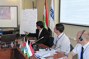 The rapporteur of a Tajik-Afghan working group presents the results of an exercise at a workshop on border co-operation in Dushanbe supported by the OSCE Office in Tajikistan, 2 June 2010.