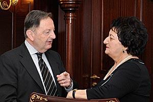 Head of the OSCE Office in Baku Ambassador Bilge Cankorel and Ombudsman Elmira Suleymanova at a conference on prevention of torture and ill treatment in Azerbaijan, Baku, 24 May 2010.