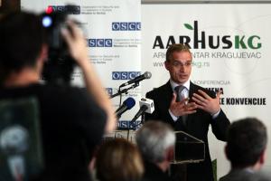 Thomas Moore, Deputy Head of the OSCE Mission to Serbia, speaks at a conference on the implementation of the Aarhus Convention in Serbia, Kragujevac, 28 April 2010.