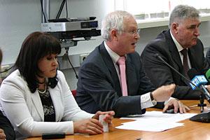 Goran Svilanovic, Co-ordinator of OSCE Economic and Environmental Activities, speaks to the media at a conference on the implementation of the Aarhus Convention in Serbia, Kragujevac, 28 April 2010.