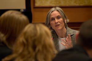 ODIHR's Senior Anti-Trafficking Adviser, Shivaun Scanlan, addresses participants at a meeting on human rights protection in the return of trafficking victims to their country of origin in Warsaw, Poland, on 14 April 2010.