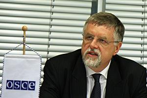 Ambassador Herbert Salber, the Director of the OSCE Secretariat's Conflict Prevention Centre, briefs journalists on developments in Kyrgyzstan. Vienna, 15 April 2010.