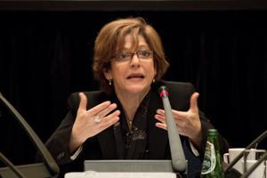 The OSCE's Special Representative and Co-ordinator for Combating Trafficking in Human Beings, Maria Grazia Giammarinaro, speaks during the opening session of a meeting on trafficking issues held in Warsaw, Poland, on 14 April 2010.
