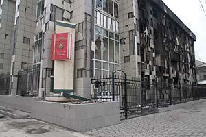 The burnt-out building of the National Prosecutor's Office in Bishkek, 11 April 2010.