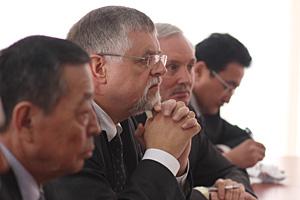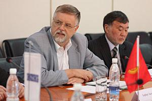 Ambassador Herbert Salber (c), Director of the OSCE Conflict Prevention Centre, at a meeting in Bishkek, 10 April 2010.