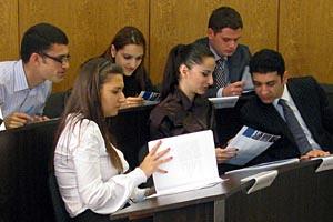 Students look at documents before a lecture at the newly established diplomatic school in Armenia, Yerevan, 29 March 2010.