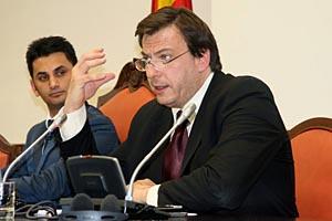 The Head of OSCE Spillover Monitor Mission to Skopje, Ambassador Jose Luis Herrero, addresses the Members of Parliament ahead of International Roma Day, Skopje, 7 April 2010.
