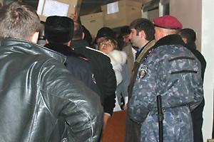 Precinct election commission officials with boxes of counted votes cast in the second round of the Ukrainian presidential election, Simferopol, 8 February 2010.