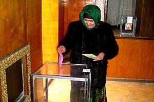 A woman casts her ballot in the Tajikistan parliamentary elections, 28 February 2010.