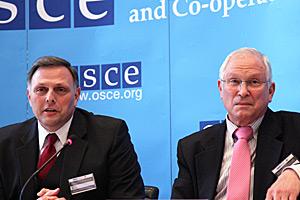 William Bryan, Deputy Assistant Secretary for Infrastructure Security and Energy Restoration at the U.S. Department of Energy, and Raphael Perl, OSCE Head on Anti-Terrorism Issues, at a news conference. Vienna, 11 February 2010.