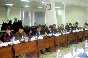 Participants at a co-ordination meeting on disaster mitigation, Osh, 8 December 2009.