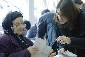 A voter preparing to cast her ballot during the Romanian presidential election, Bucharest, 22 November, 2009.