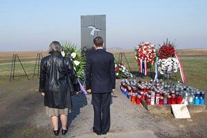 Greek Ambassador to Croatia, Ourania Arvaniti, and the Head of the OSCE Office in Zagreb, Enrique Horcajada Schwartz, pay respect to the victims of the Ovcara massacre on its 18th anniversary, 20 November 2009.