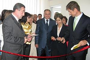 L-r: Mayor of Kapan, Artur Atayan, Jamila Seftaoui, OSCE Senior Advisor on Gender Issues, and Carel Hofstra, Deputy Head of the OSCE Office in Yerevan, at the opening of the Kapan Women's Resource Centre, Kapan, 2 October 2009.