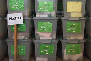 Ballot boxes falling under the 8 September Order of the Election Complaints Commission in storage waiting to be audited, Kabul, 8 October 2009.