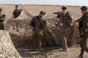 Turkmen border officials camouflaging all-terrain vehicles during a desert patrol at the border crossing point of Imamnazar, October 2009.