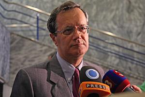 OSCE Secretary General Marc Perrin de Brichambaut speaks to journalists during an OSCE conference on strengthening energy security in the OSCE area, Bratislava, 6 July 2009.