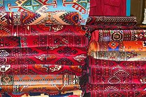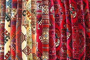 Colourful handmade Turkmen carpets are one of the primary handcraft export goods produced in Turkmenistan.