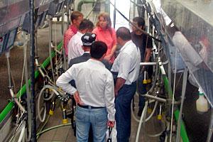 A delegation of the Farmers' Association of Uzbekistan gets acquainted with modern milking technologies at the Bavarian State Agricultural Research Centre in Grub, 26 May 2009.