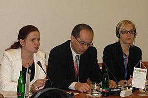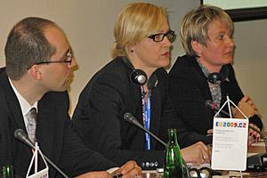 Czech Deputy Interior Minister Lenka Ptackova Melicharova (l), with Eva Biaudet (r), OSCE Special Representative on combating trafficking, and Martin Linhart of the Interior Ministry at a conference of EU trafficking rapporteurs, Prague, 30 March 2009.