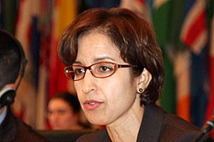 The OSCE Senior Adviser on Gender Issues, Jamila Seftaoui, delivers a speech to the OSCE Forum for Security Co-operation. 1 April 2009, Vienna.