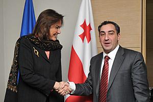 OSCE Chairperson-in-Office, Greek Foreign Minister Dora Bakoyannis (left), meets the Prime Minister of Georgia, Nika Gilauri, in Tbilisi, 23 March 2009.