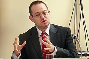 Bojan Brkic, Deputy Editor-in-Chief, Radio Television of Serbia (RTS) speaks at an OSCE-organized seminar on effective communication between press officers of public bodies and journalists, Belgrade, 25 March 2009.