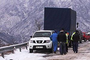 An OSCE Presence in Albania vehicle on a road near Qaf Mali, Fushe-Arrez, Puka district (Shkodra region), 27 September 2008.