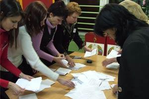 Election commission members counting ballots during the 28 September 2008 parliamentary elections in Belarus.