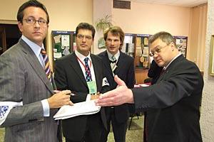 ODIHR Director Janez Lenarcic (second left) visits a polling station during the 28 September 2008 parliamentary elections in Belarus.
