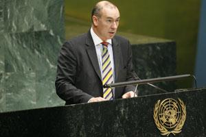 Marc Baltes, Senior Adviser to the Co-ordinator of OSCE Economic and Environmental Activities, addresses a UN General Assembly meeting on landlocked countries, New York, 3 October 2008.