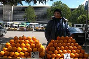 A vendor sells fruits at a street market in Tbilisi, 7 May 2008.