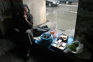 A woman refugee from Abkhazia sells sunflower seeds in Tbilisi, 6 May 2008.