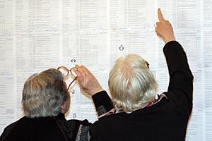 Georgian citizens looking for their names on a voter list during parliamentary elections, in Tbilisi 21 May 2008.