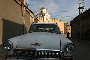 An old Volga GAZ-21 car parked in the street in the Avlabar district of Tbilisi, 10 May 2008.