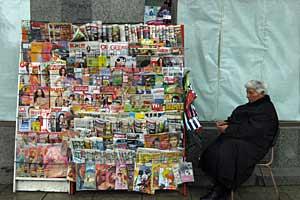 A woman sells newspapers and magazines in Tbilisi, 6 May 2008.