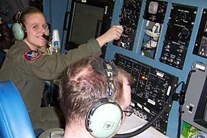 A US servicewoman on board a plane, 12 September 2005, flying over Russia under the Open Skies Treaty.