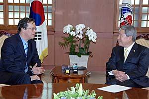 OSCE Secretary General Marc Perrin de Brichambaut (left) during talks with South Korean Foreign Minister Yu Myung-hwan in Seoul, 29 April 2008.