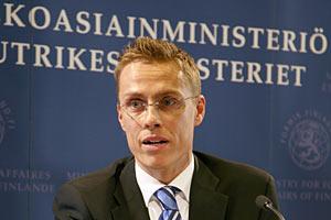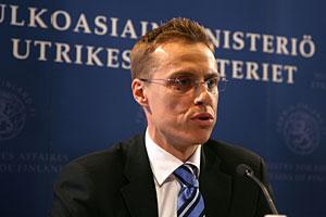 Finland's new Foreign Minister and OSCE Chairman-in-Office, Alexander Stubb, speaks at a press conference following his appointment, Helsinki, 4 April 2008.