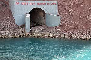 A water release tunnel at the Nurek hydro-electric power station on the Vakhsh River in Tajikistan, some 75 km east of Dushanbe, 27 February 2008.