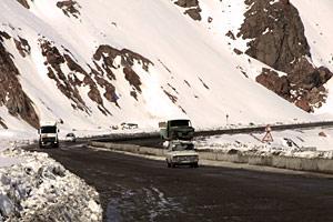 The snow-covered Kamchik mountain pass, between Tashkent and the Ferghana Valley, March 2008.