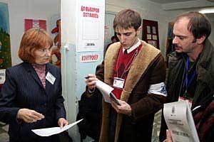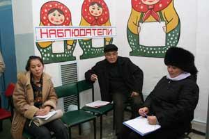 Domestic observers at a polling station in Kyrgyzstan during the 16 December 2007 parliamentary elections.
