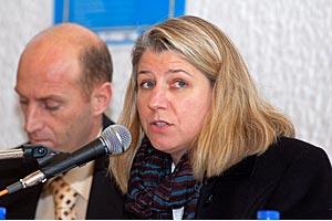 OSCE project manager Melissa Stone addresses people attending an employment fair supported by the Mission in Kosovo, Prishtine/Pristina, 5 December 2007.